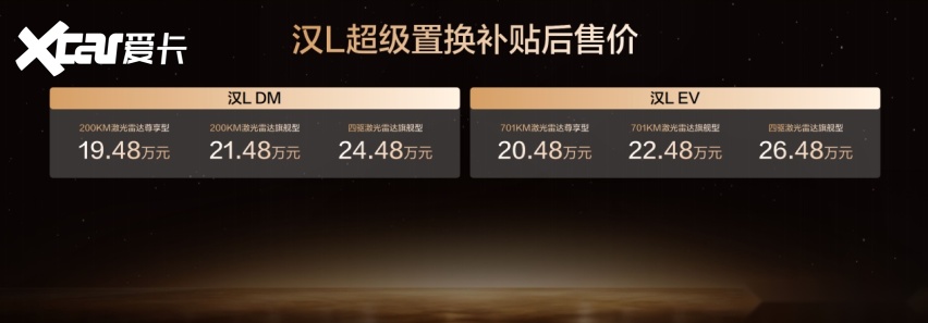 11月21日,比亚迪划时代旗舰轿车汉L携新车色及OTA正式发布。此中,汉L EV搭载超等e平台全域千伏架构,以“兆瓦闪充 油电同速”,完全终结纯电补能焦炙;汉L DM标配第五代DM手艺,兼顾超强机能取超等效能。此次,汉L全新解锁“车位到车位”领航辅帮功能,并带来全新车色、聪慧生态取平安设置装备摆设的全面升级!此次,汉L EV共带来3款车型,补助后售价20。48万~26。48万元;汉L DM3款车型,补助后售价19。48万~24。48万元;同时,(以上权益截至12月31日)
